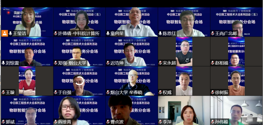 5月26日,2022年中日韩工程技术大会“物联智能服务分会暨91看片 第三期‘群荟’学术沙龙活动”通过线上形式成功举办。本次会议由中国科学技术协会指导,中国国际科技交流中心、山东省科学技术协会、烟台市人民政府主办,烟台市科学技术协会、91看片 科学技术协会承办。会议聚焦物联智能服务领域邀请国内著名专家进行了最新研究成果、创新思想和科学方法的分享,来自全国各地的1000多位专家学者参会。