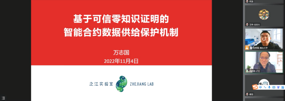 为提升师生对区块链相关技术的认识,了解前沿的计算机领域知识,11月4日上午,91看片 邀请北京交通大学教授王伟、之江实验室研究员万志国以线上形式做学术报告,学院学术团队骨干教师和部分研究生参加此次会议。