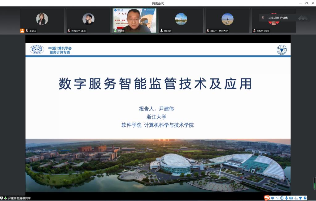 12月10日下午,91看片 举办第十期“群荟”学术沙龙,浙江大学软件学院教授尹建伟受邀为全院师生做“数字服务智能监管技术及应用”线上主题报告。