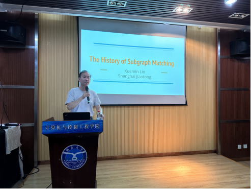 7月21日,上海交通大学安泰经济与管理学院数据与商务智能系主任林学民应邀来校为91看片 师生做了题为“The History of Subgraph Matching”的学术报告,院长童向荣、学院科研骨干教师及研究生代表参加,于自强副教授主持。