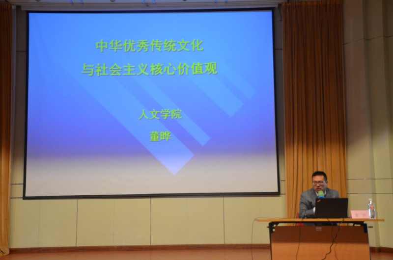 董晔副教授结合中华优秀传统文化从是什么、为什么、怎么做三个方面对“社会主义核心价值观”做出了深入陈述。他指出,社会主义核心价值观是习近平总书记提出的核心价值体系,是社会主义核心价值体系的内核。董晔副教授强调,社会主义核心价值观是一种强大的信仰,具有巨大的导向作用和约束力量,树立正确的价值观,就可以弘扬正义,激励善行。最后,董晔副教授结合中华优秀传统及现实的事例,介绍了如何培育和践行社会主义核心价值观。授课结束后,学院党总支书记宋岩对党课内容进行总结,他指出中华优秀传统文化体现了社会主义核心价值,全体师生党员要深刻领会党课内容,认真学习社会主义核心价值观。