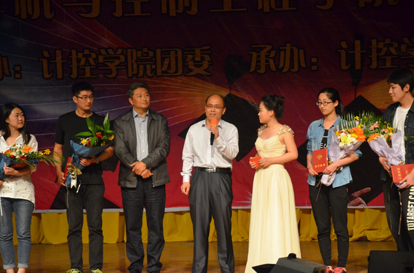 晚会中,宋岩和童向荣向2016届毕业生中的优秀代表:学习之星鹿竹叶、科创之星孙凯信、考研之星孙锐、就业之星陈堃、奉献之星王鑫、自强之星蒋康、创业之星刘长辉、体育之星展毅、文艺之星孙兆鹏、贡献之星王志伟颁奖。童向荣代表学院向毕业生致辞,感谢毕业生对学院工作的理解和支持,嘱咐毕业生学有所成奉献社会回报母校,祝愿毕业生幸福安康顺心快乐。