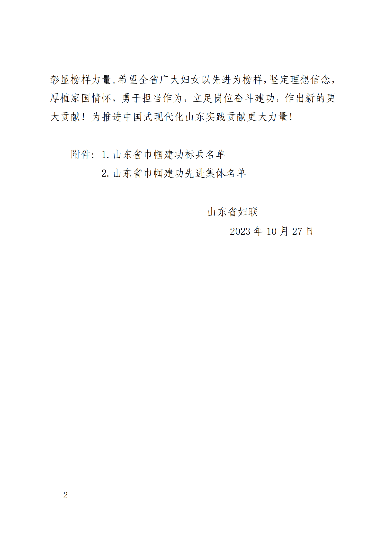 近年来,全省各界妇女认真学习贯彻习近平总书记重要讲话和党的二十大精神,勇于担当,锐意进取,为推动全省经济社会高质量发展作出了积极贡献。为表彰先进、树立榜样,激励广大妇女在新时代、新征程中继续发挥先锋模范作用,省妇联决定,授予280人山东省巾帼建功标兵称号,授予100个单位山东省巾帼建功先进集体称号。在此次评选推荐中,经各分工会推荐,学校组织、人事、纪检监察等部门审核通过,党委研究同意等程序确定王莹洁为我校推荐人选。