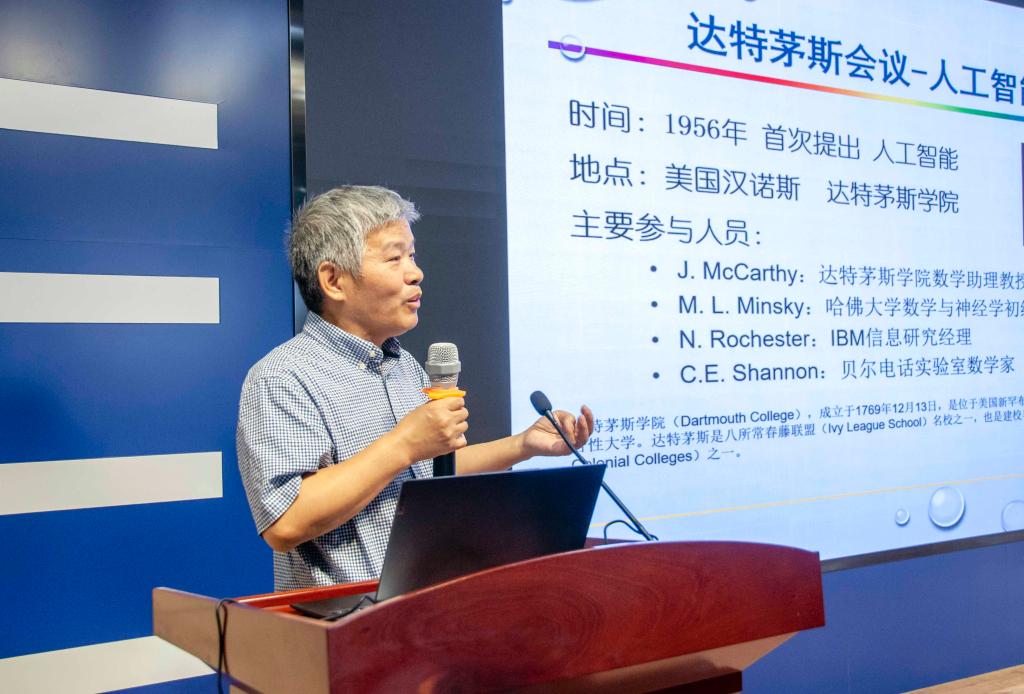 烟台大学计算机与控制工程学院院长童向荣代表教研中心详细介绍了烟台人工智能通识教育虚拟教研中心建设规划的相关情况。国家杰出青年科学基金获得者、国家“百千万人才工程”入选者、烟台大学计算机与控制工程学院苏开乐教授作专题学术报告,系统梳理了人工智能技术的演进脉络,深入分析了当前研究热点与应用场景。