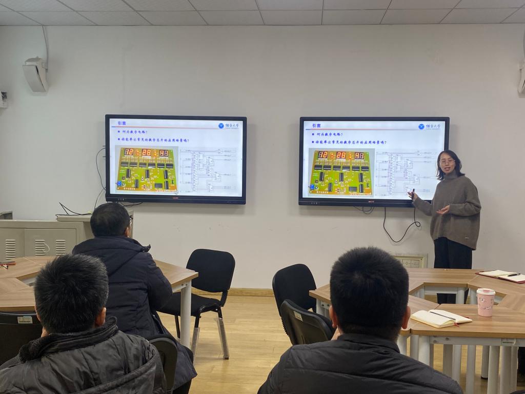 接着,王玲玲老师开展了20分钟的以“认识数字电路”的为主题的教学演示,接着由贺利坚老师组织参与研讨的全部老师对教学目标、教学的结构,以及各部分的安排等进行全面深入的反思和反馈,分析亮点,找出改进之处,进一步固化了大家在微讲座中学习到的知识点,并且从集体反思中,获得个人教学改进的思路,提高教学设计和实施的能力。