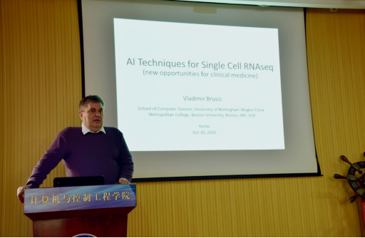2020年10月30日上午10:00,应我院邀请,宁波诺丁汉大学计算机科学专业李达三首席教授Vladimir Brusic博士在学院二楼会议室6205做了题为“AI Techniques for Single Cell RNAseq (new opportunities for clinical medicine)”的报告。我院学术团队骨干教师,部分研究生参加了报告会。