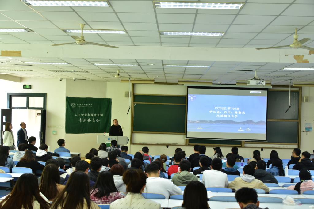 2021年4月16日,“CCF走进高校”活动来到了烟台大学。本次报告邀请了中国计算机学会人工智能与模式识别专委会常委、副秘书长、山东大学尹义龙教授,智能通信软件与多媒体北京市重点实验室副主任、北京邮电大学石川教授,IEEE Fellow、国家杰青、中国自动化学会模式识别与机器智能专委会副主任、北京大学林宙辰教授三位讲者。烟台大学、鲁东大学、山东工商学院等高校的近200位师生参与了此次报告会,师生热情高涨,现场与专家进行了深入探讨。活动增加了现场互动环节,并向现场听众赠送了CCF小礼物。