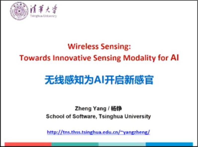 国家青年拔尖人才计划(万人计划)、国家优秀青年基金获得者、清华大学杨铮副教授作了题为“无线感知为AI开启新感官”的特邀报告。杨铮副教授从传播方式、成像原理、信号特点等三方面,对比无线感知与视觉感知的异同,分析二者的互补优势。报告针对无线射频信号对环境依赖问题,介绍适用于无线感知的环境无依赖特征提取方法;针对无线感知模型的局限性,介绍利用无线射频信号特征的深度神经网络设计;针对无线感知领域高质量数据集不足、研究难以实现技术积累的问题,介绍无线感知领域数据集构建方案。最后总结了无线感知的发展现状,并展望了未来的发展趋势。