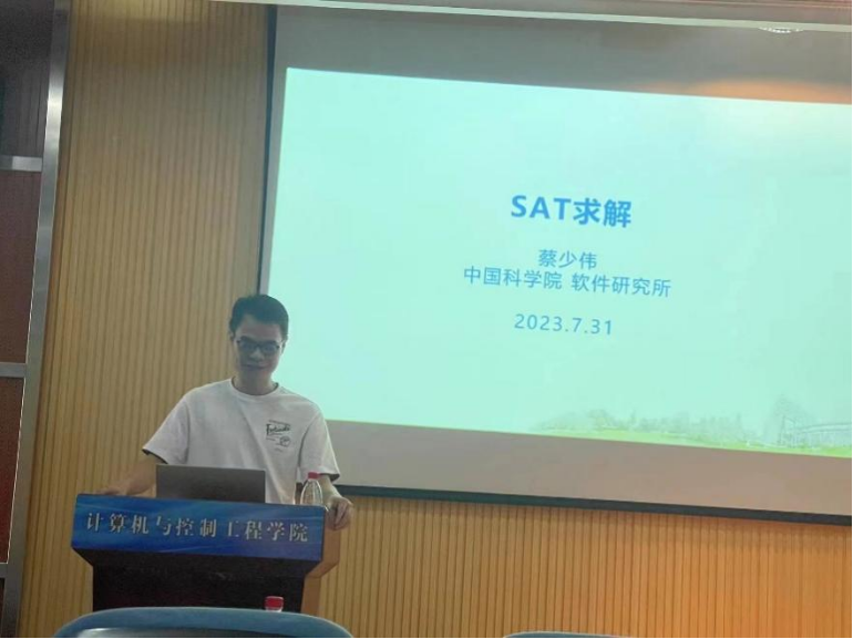 7月31日,中国科学院软件研究所蔡少伟研究员来校为我院师生做了题为“SAT求解”的学术报告,学院科研骨干教师及研究生代表参加,赵相福教授主持。