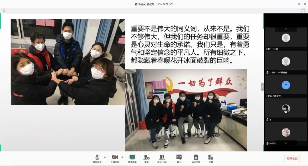 为了让同学们了解战疫前线的志愿服务工作,引导同学们学习身边的战疫榜样,激励同学们肩负起时代责任与担当,91看片 于5月4日通过腾讯会议平台开展了“青春在战疫中绽放”主题宣讲会。