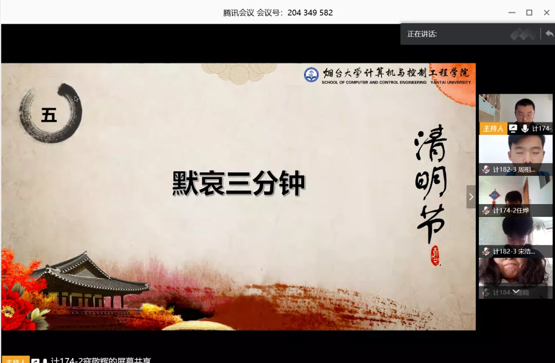 赤子丹心昭日月,英雄肝胆映山河。4月4日上午,91看片 举办了以“缅怀英烈祭忠魂,抚今追昔思奋进”为主题的清明节线上活动,缅怀革命先烈,致敬抗疫英雄,哀悼罹难同胞,并以此引导学生继承英烈遗志,传承民族精神,厚植家国情怀。本次活动在腾讯会议平台举行,学院各班级学生代表参加。