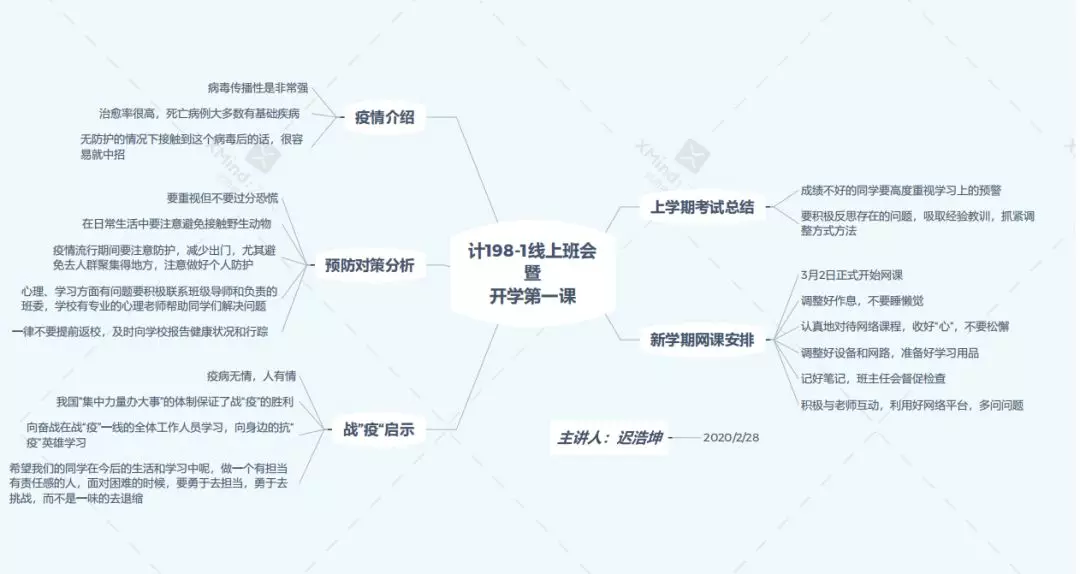 不一样的“云班会”开启了非同寻常的新学期,希望同学们在新学期做合格学生,显青年担当,守不变初心,为攻克难关贡献力量,为个人成长打牢基石,待到春暖花开、重返校园时,我们必将开启一个全新的征程。