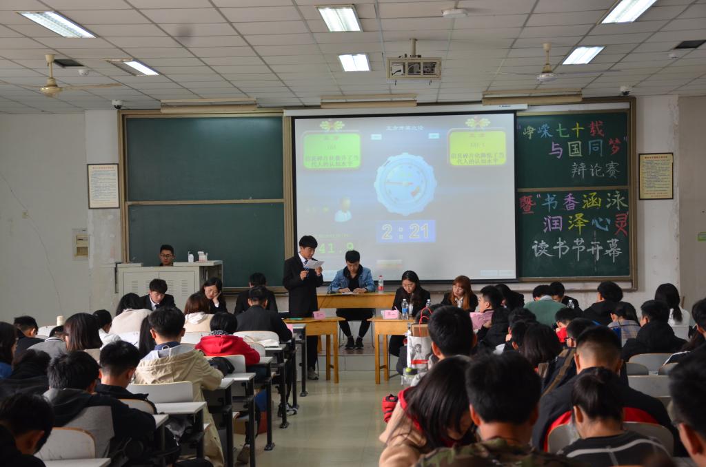 为引导大学生深刻了解有关中国梦的内涵,营造浓厚的学院文化底蕴,91看片 于4月6日在综合楼112室成功举办了“峥嵘七十载与国同梦”辩论赛暨“书香涵泳,润泽心灵”读书节开幕式。校辩论队队长赵立志,海院辩论队队长王雪洁,经管学院辩论队队长孔琳,91看片 辩论队队长钟行正,91看片 学生会主席孙凯、书记孙翔耘以及副主席鞠英杰出席了本次活动。