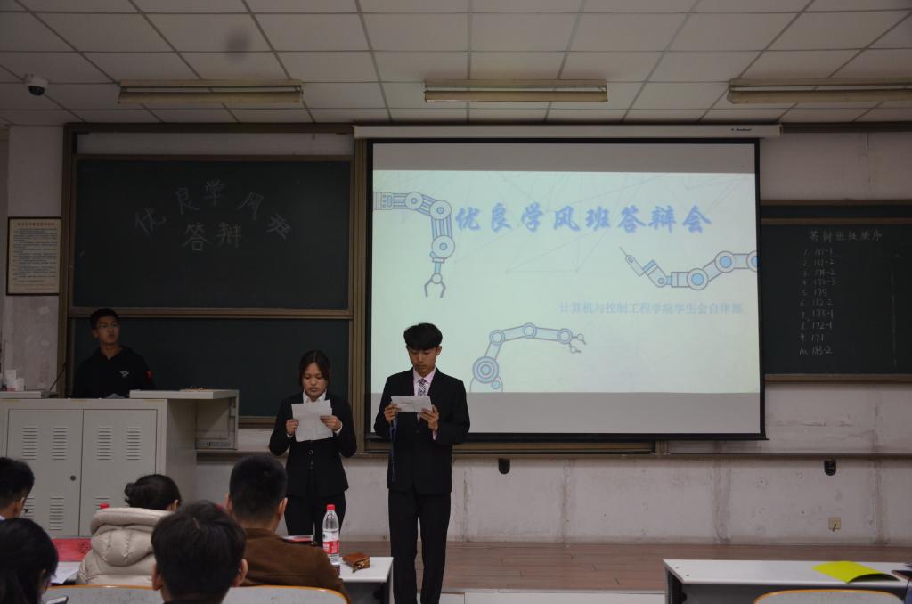 为了贯彻落实学校对于“文明烟大”建设的倡议,加强91看片 学风建设,展现各班级积极向上的精神风貌,91看片 于3月29日晚上在综合楼112召开自律学风月优良学风班答辩会,团委书记丁晓丹、团委老师宋健栋出席了此次会议。