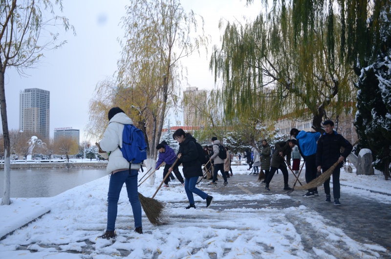 为保证广大师生的出行安全,提升入党积极分子及发展对象的党性修养,并发挥其奉献服务精神,彰显新时代大学生的精神风貌,91看片 于12月7日早在钟楼西侧道路组织了入党积极分子及发展对象义务扫雪活动。