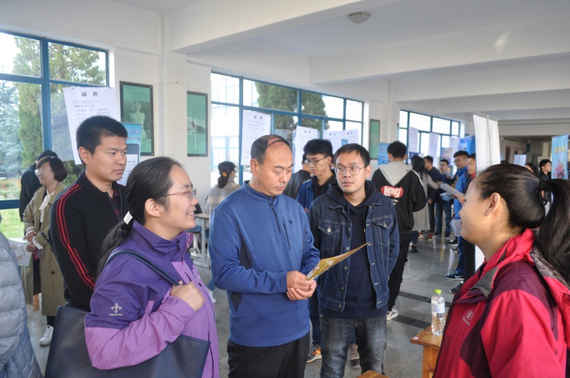 为切实做好学院毕业生的就业服务工作,帮助企业寻找人才,91看片 联合机电学院、人文学院于11月3日上午在千米长廊举办了校园招聘会,学校领导高度重视,党总支书记秦月红,党总支副书记贺毅,团委老师蔡新海、宋健栋亲临招聘会现场进行指导工作。