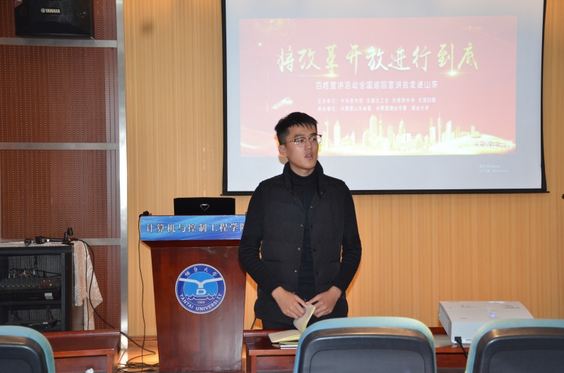 为积极响应“将改革开放进行到底”全国巡回宣讲会的召开,进一步深入宣传贯彻习近平新时代中国特色社会主义思想,91看片 于10月27日于科技馆6205室组织学生干部观看本次报告会的直播,团学组织主席孙凯出席本次活动。
