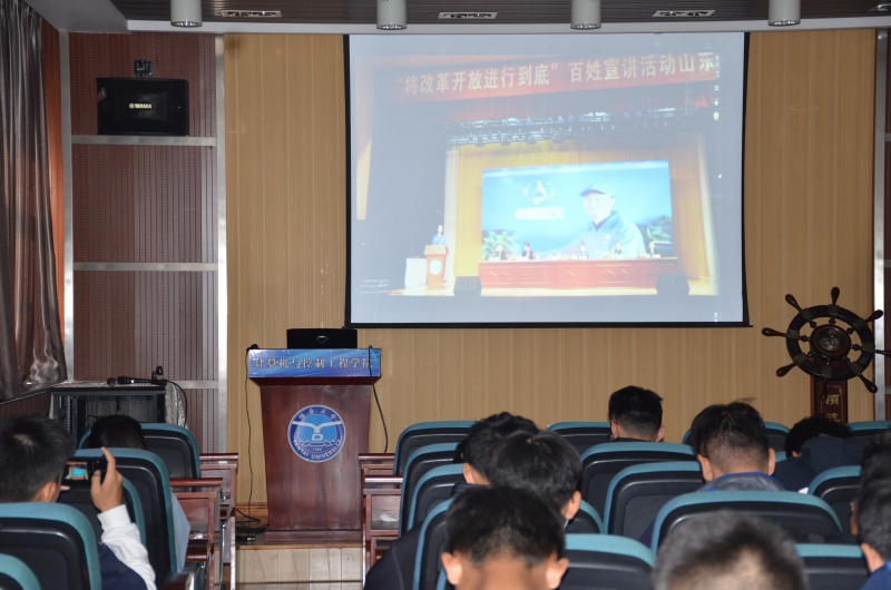 学生干部全部到达现场并落座后,直播开始,同学们聚精会神地观看直播,宣讲会讲述了中国改革开放40年生活的变迁和奋斗的故事,展示了中国人民生活水平发生的翻天覆地的变化——从贫穷到温饱,再到小康社会的跨越式发展。40年峥嵘岁月,烙印着一代又一代人的勇敢探索,记录了中国改革开放过程中的历史性跨越,同学们无不感慨中国在改革开放过程中激发出的无限潜力,纷纷参与其中,发送弹幕以表达自己对中国这种昂扬姿态的赞美与歌颂。直播结束后,孙凯做总结发言,他提到,改革开放是当代中国发展进步、实现中国梦的必经之路,“将改革进行到底”已凝聚起社会力量,成为了中国新时代的最强音。他还讲到,历史的接力棒已传到当代青年手上,青年大学生们应该逢山开路、遇水架桥,让前辈开辟的这条道路继续向前延伸,让中华民族以更加昂扬的姿态屹立于世界民族之林。孙凯的发言引起了同学们的共识,掌声雷动。至此,本次活动圆满结束。