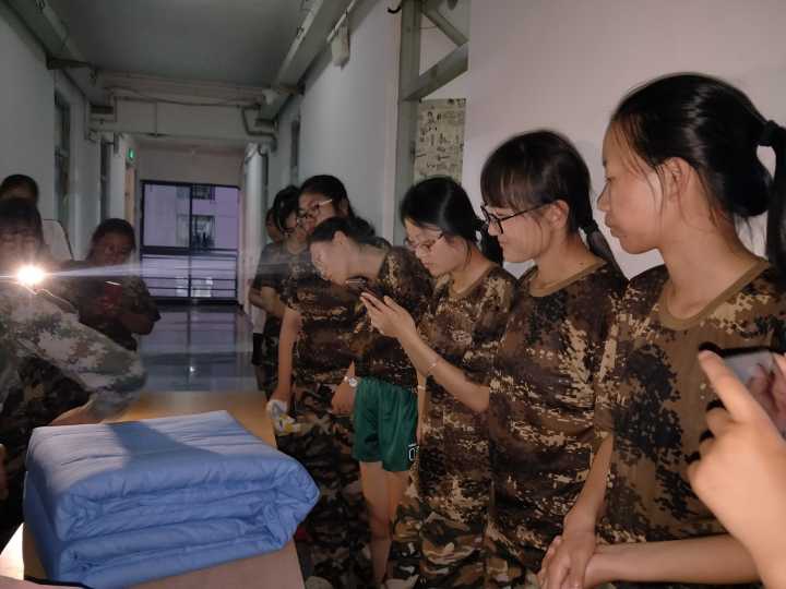 教官在南校区集合,由团学组织成员带领他们去往新生宿舍进行内务指导。活动伊始,教官在丁晓丹及各班级军训负责人的陪同下走进学生宿舍,进行内务整理指导工作。在新生宿舍里,教官说明了宿舍各处卫生标准,从整理床铺、叠放衣物到摆放牙具和各类生活用品都一一展示,在整理的过程中耐心向同学们讲解物品的整理方法和要求。并亲自演示了如何整理内务。他们将新生床铺上不太规则的被子叠成规则的立方体,为方便新生们观看,有些教官甚至将被子拿到走廊上进行演示,新生们纷纷走到走廊,认真观摩并学习教官整理内务的技巧,不时对教官娴熟的技巧和高超的技艺赞叹不已。教官演示结束之后,新生们开始整理自己的床铺,教官在一旁巡视指导。期间,丁晓丹走访宿舍强调整理内务的重要性,希望大家认真整理内务,通过本项工作养成良好的生活习惯,为以后的学习和工作打下坚实的基础。活动最后,丁晓丹对全体教官表示了感谢,并期望军训能够顺利进行。至此,本次活动圆满结束。