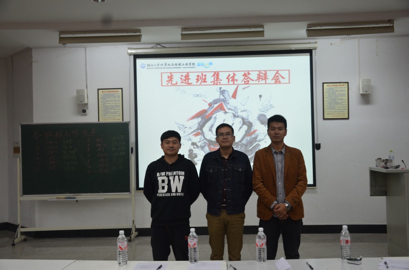 为推进优良学风建设,同时加强班级管理经验交流,91看片 于10月17日晚在综合楼423举办了先进班集体答辩会。辅导员蔡新海、刘柏君和宋健栋担任评委出席了本次大会。