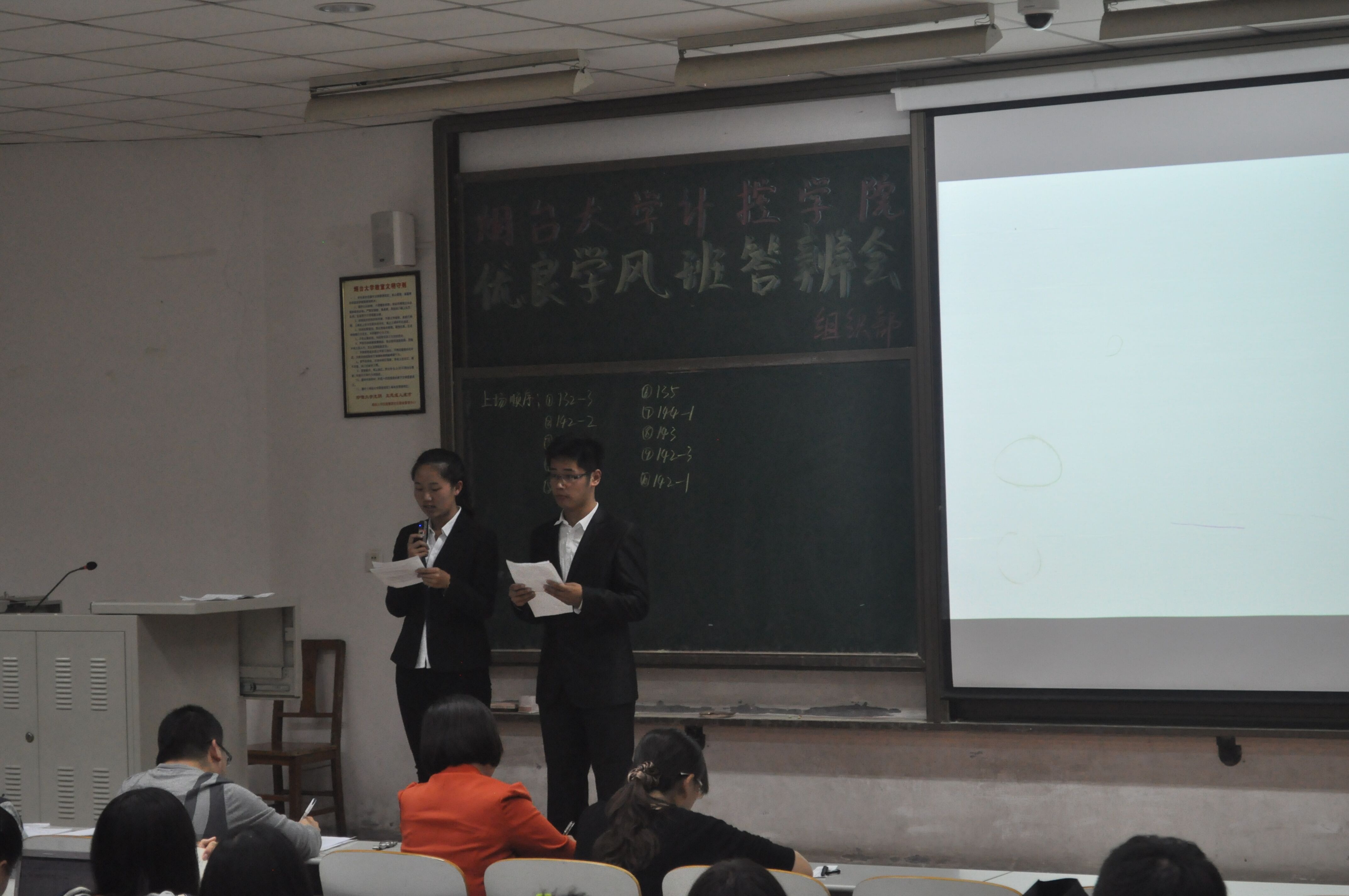 为进一步加强学风建设,帮助同学们更好地掌握学习方法,学好专业知识,提高自身素质,计算机与控制工程学院于10月23日在综合楼108举办了“优良学风班建设”的答辩会。计算机与控制工程学院党总支副书记贺毅,团委书记刘晓婷,辅导员庞磊、蔡新海,计143班导师李瑞和计146-1班导师徐金东出席了本次会议。