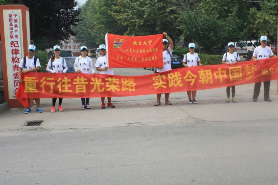 以“脉脉红情,赤子追梦”为主题的“赤梦”实践队一行9人步入沂蒙革命老区,体验先烈们在红色之路上留下的痕迹。队员们赴临沂蒙阴县垛庄镇,参观了孟良崮纪念馆和雕塑林,在垛庄镇书画儿童艺术培训中心开展了赠书活动,拜访了革命军人赵友平。队员们还结合学院专业特色,开展了电脑义诊系列活动。此外,实践队多次进入社区放映革命电影并取得了良好的成果。在为期十一天的时间里,队员们将自己所学知识付诸实践,发扬吃苦耐劳的精神,不仅圆满完成了此次暑期社会实践活动,更是很好的弘扬和发展了革命精神。