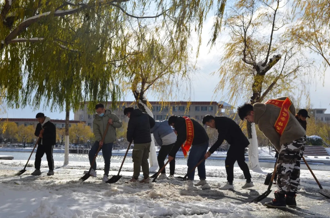 冰封冬日,寒气逼人,但各位党员不畏寒冷,拿着铁锹、扫帚等除雪工具,在钟楼前的道路上进行集中清扫。党员们忙碌的身影在皑皑白雪中构成了一道亮丽的风景线。虽然室外温度极低,但大家的劳动热情和团结协作的力量使这个冬日变得格外温暖。大家齐心协力、配合默契,经过一个多小时的清扫,路面积雪被清除干净,道路恢复了畅通。