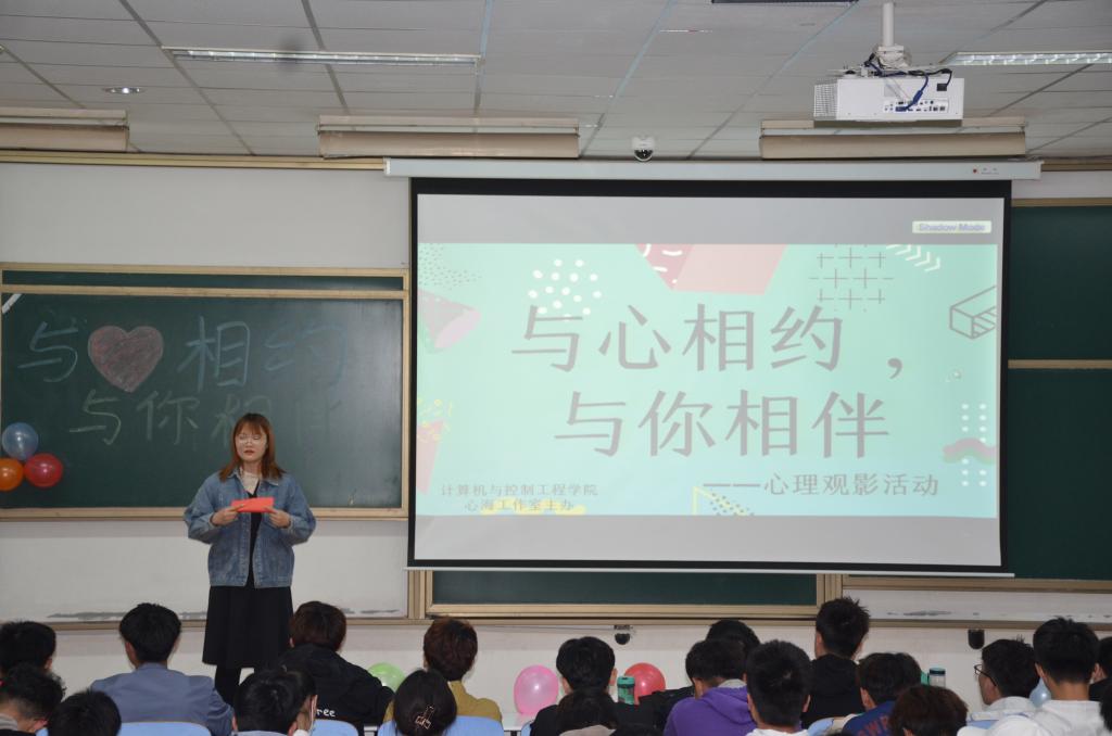 为了丰富同学们的课余生活,提高同学们的心理素质,,计算机与控制工程学院于4月20日在综合楼207举行了“与心相约,与你相伴”心理观影活动,19级和20级同学参加了本次活动。
