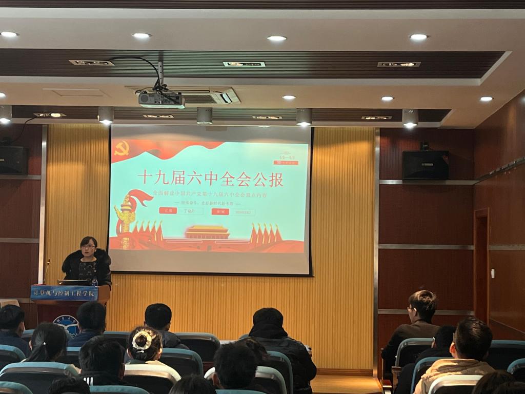 11月8日至11日,中国共产党第十九届中央委员会第六次全体会议在北京胜利召开,会上通过《中共中央关于党的百年奋斗重大成就和历史经验的决议》(以下简称《决议》)。全会重点研究了全面总结党的百年奋斗的重大成就和历史经验问题,审议通过了党的第三个历史决议。为深入学习党的十九届六中全会精神,推进党史学习教育,计算机与控制工程学院于12月3日开展党的十九届六中全会“沉浸式”宣讲,用通俗的语言、“沉浸式”的历史故事,使党的十九届六中全会精神入脑入心,学院副处级组织员丁晓丹担任宣讲人,学院全体研究生党员和主要学生干部参与学习。